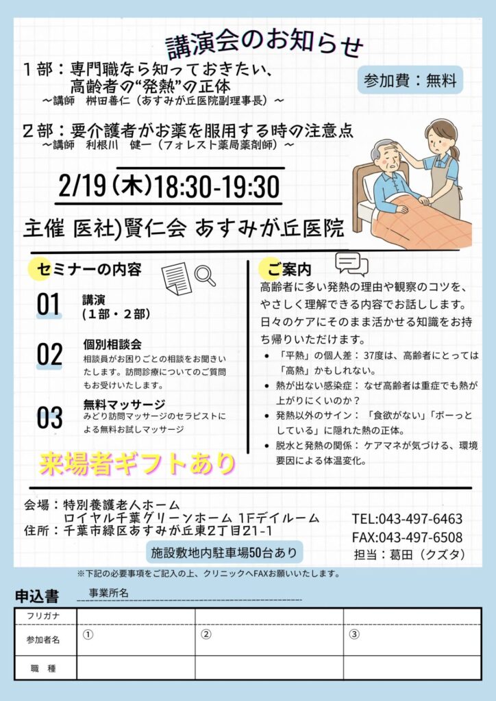 【医療・介護関係者向け】あすみが丘医院講演会のお知らせ